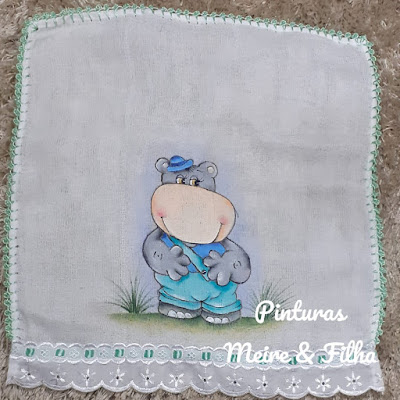 - fralda para meninosFralda de boca Hipopótamo Pintado em Tecido 18 de abril de 2020 Pinturas Meire e Filha Fraldinha de boca para menino com acabamento em crochê.