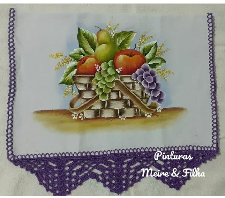 Guardanapo pintado e acabamento em crochê.