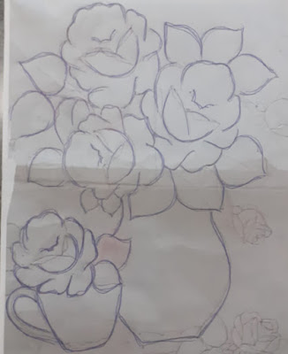 Risco e pintura de Jarro com Rosas