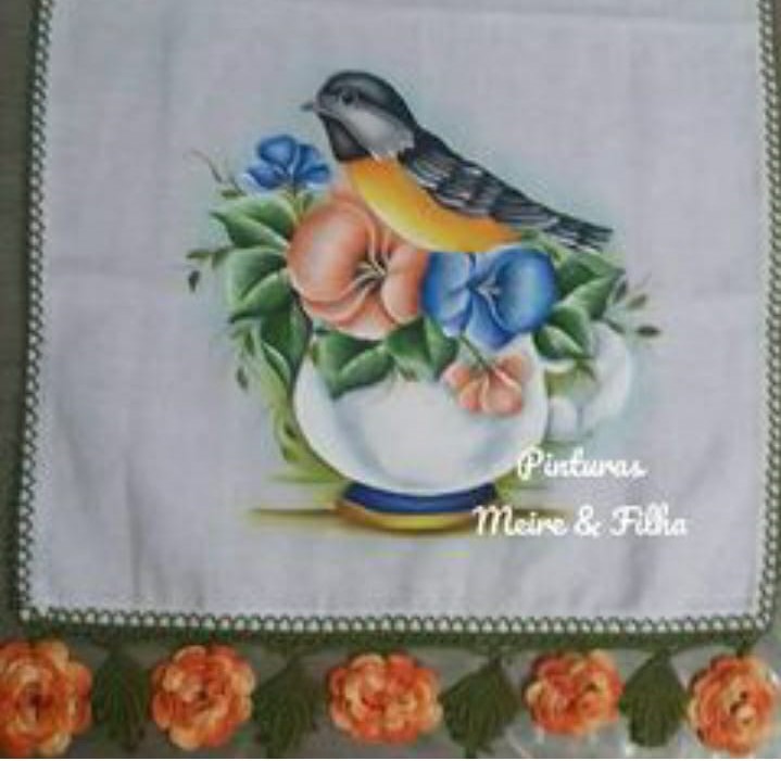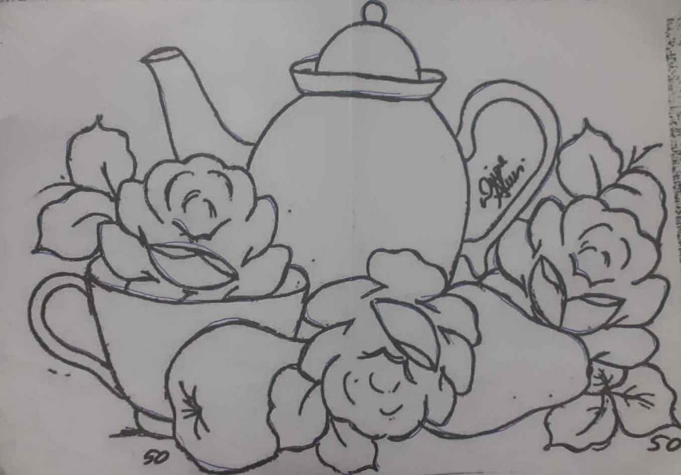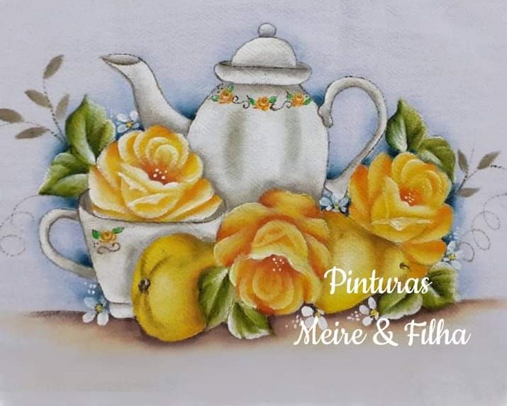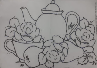 Risco e pintura de Rosas e bule - Pinturas Meire e Filha